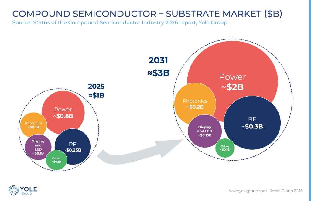 Yole Group announces the release of its annual market and technology report, Status of the Compound Semiconductor Industry 2026 – Focus on Substrates and Epiwafers, highlighting sustained structural growth through 2031.