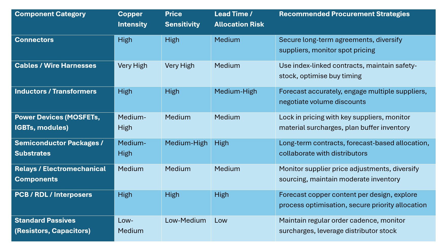 These elevated copper prices will ultimately increase cost bases across a wide range of components, especially those with high copper content such as connectors, cables, inductors, transformers, lead frames, substrates, and power devices.