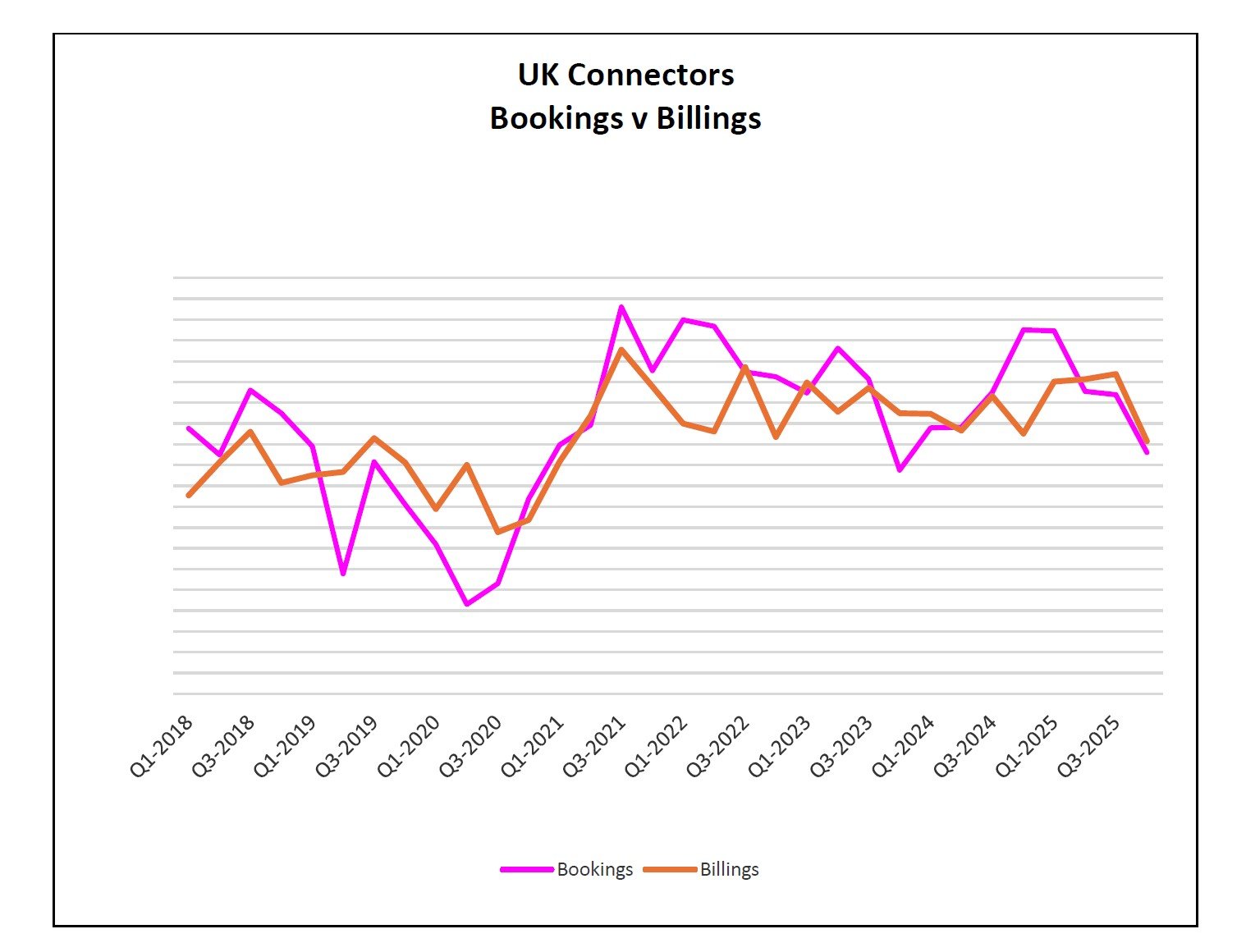 At a technology level all key interconnect products were up with the exception of RF, however, this has to be offset by the increase of 41% in members value add activity which indicates a focus on things such as cable assemblies and sub systems which incorporate a lot of RF interconnect.